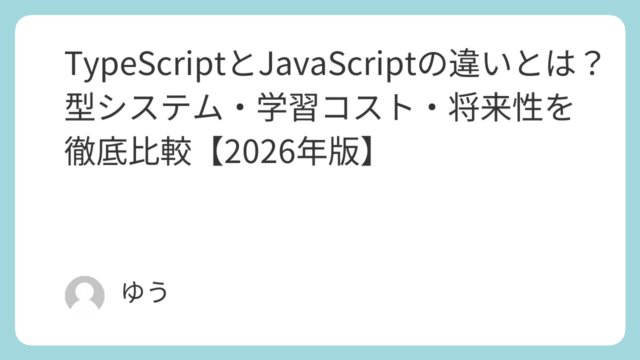 Web開発を学び始めると、「TypeScriptとJavaScriptは何が違うの?」という疑問に必ずぶつかります。名前は似ていますが、この2つには明確な違いがあり、それぞれに適した使い方があります。この記事では、TypeScriptとJa...