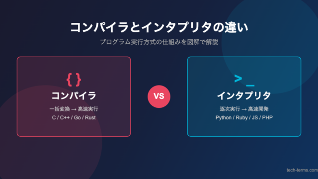 プログラミングを学び始めると、「コンパイラ」と「インタプリタ」という言葉に出会います。どちらもプログラムを実行するための仕組みですが、その動作方式には大きな違いがあります。この記事では、コンパイラとインタプリタそれぞれの特徴と違いを、具体例...